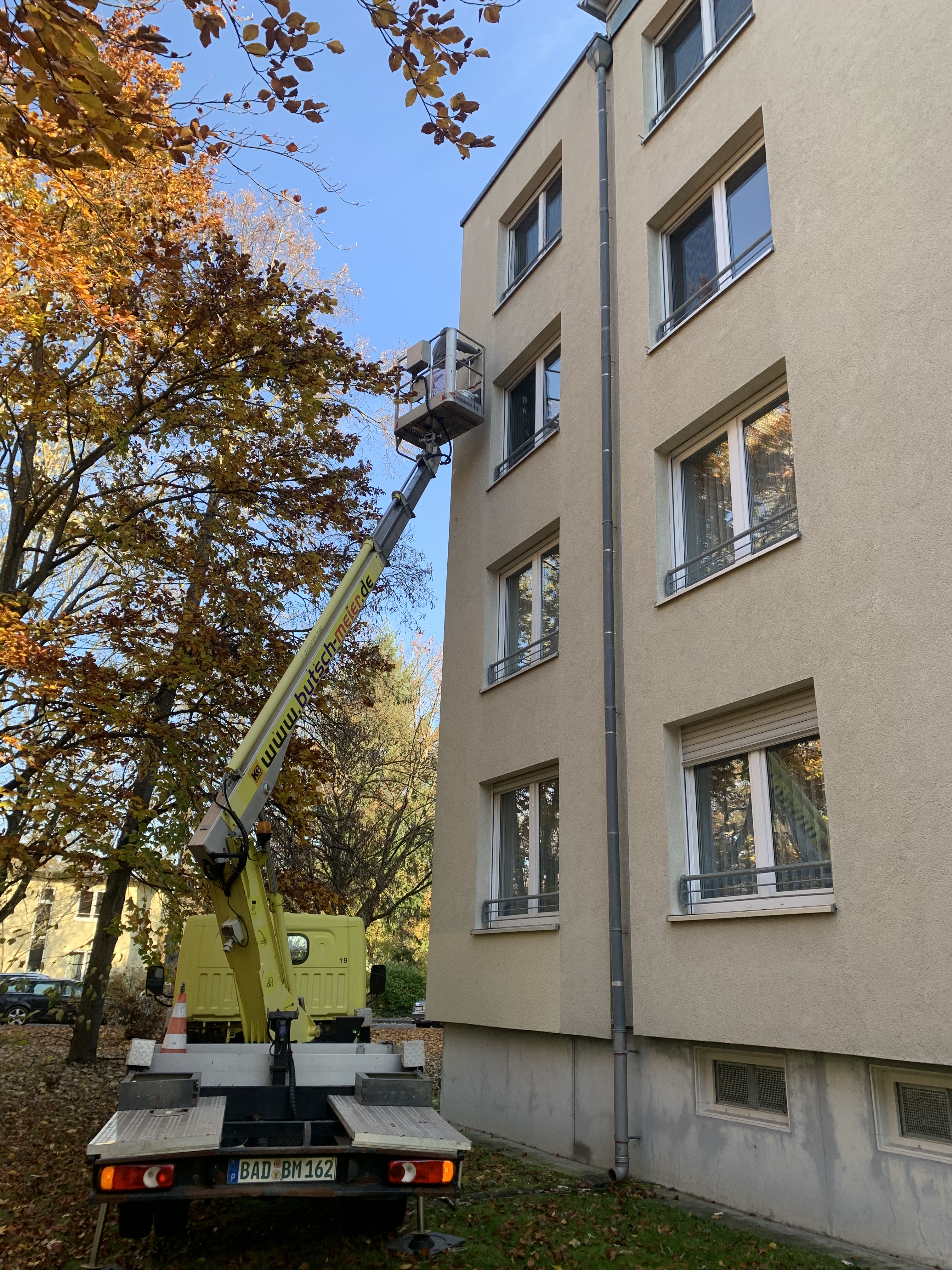 Schließen von Spechtlöchern an Wärmedämmverbundsystem-Fassaden durch den Einsatz von Arbeitsbühnen: